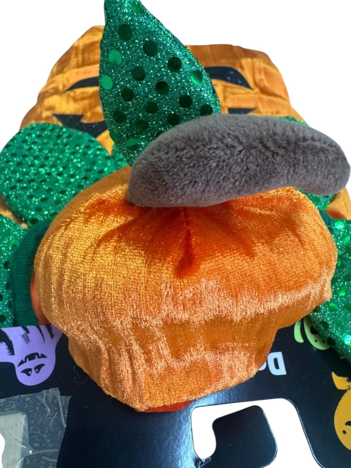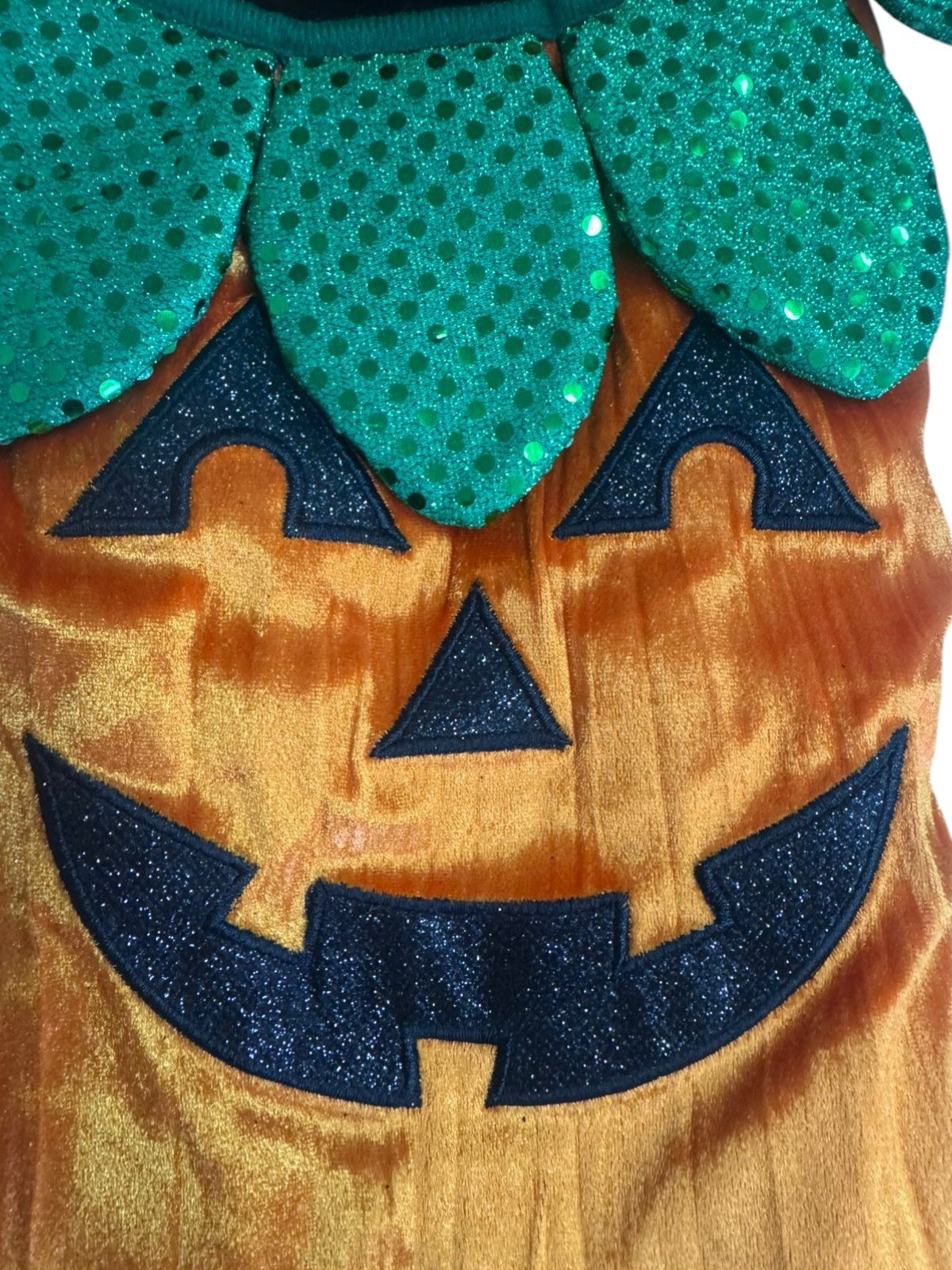 disfraz unisex presenta un lindo tema de calabaza en un vibrante color naranja.