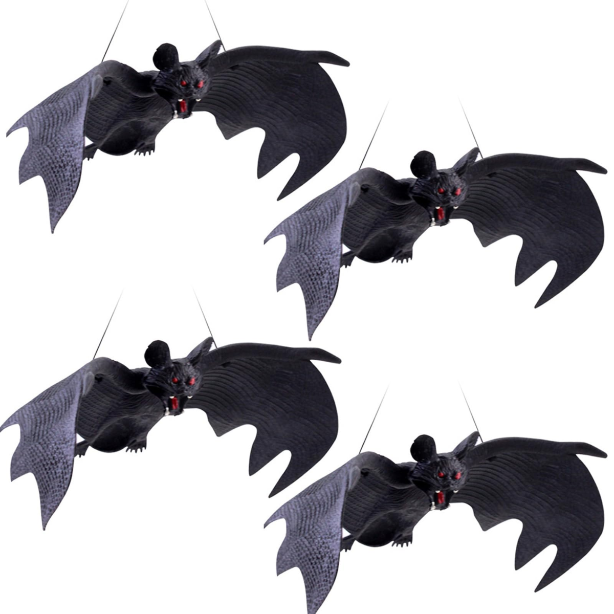 ¡Hora de ponerse espeluznante! Estos murciélagos negros colgantes son la decoración perfecta para colgar en ventanas, interiores o en el porche y sumergirse en el espíritu de Halloween. Los murciélagos tienen un lazo de cuerda, así que están listos para colgar. Ya sea que estés organizando una fiesta de Halloween o decorando para los niños, estos murciélagos son imprescindibles para asustar a tus invitados.