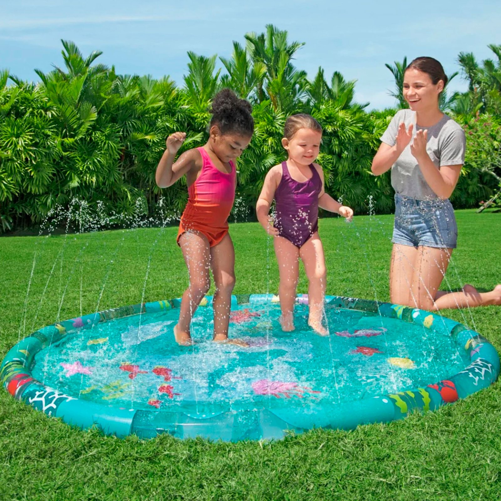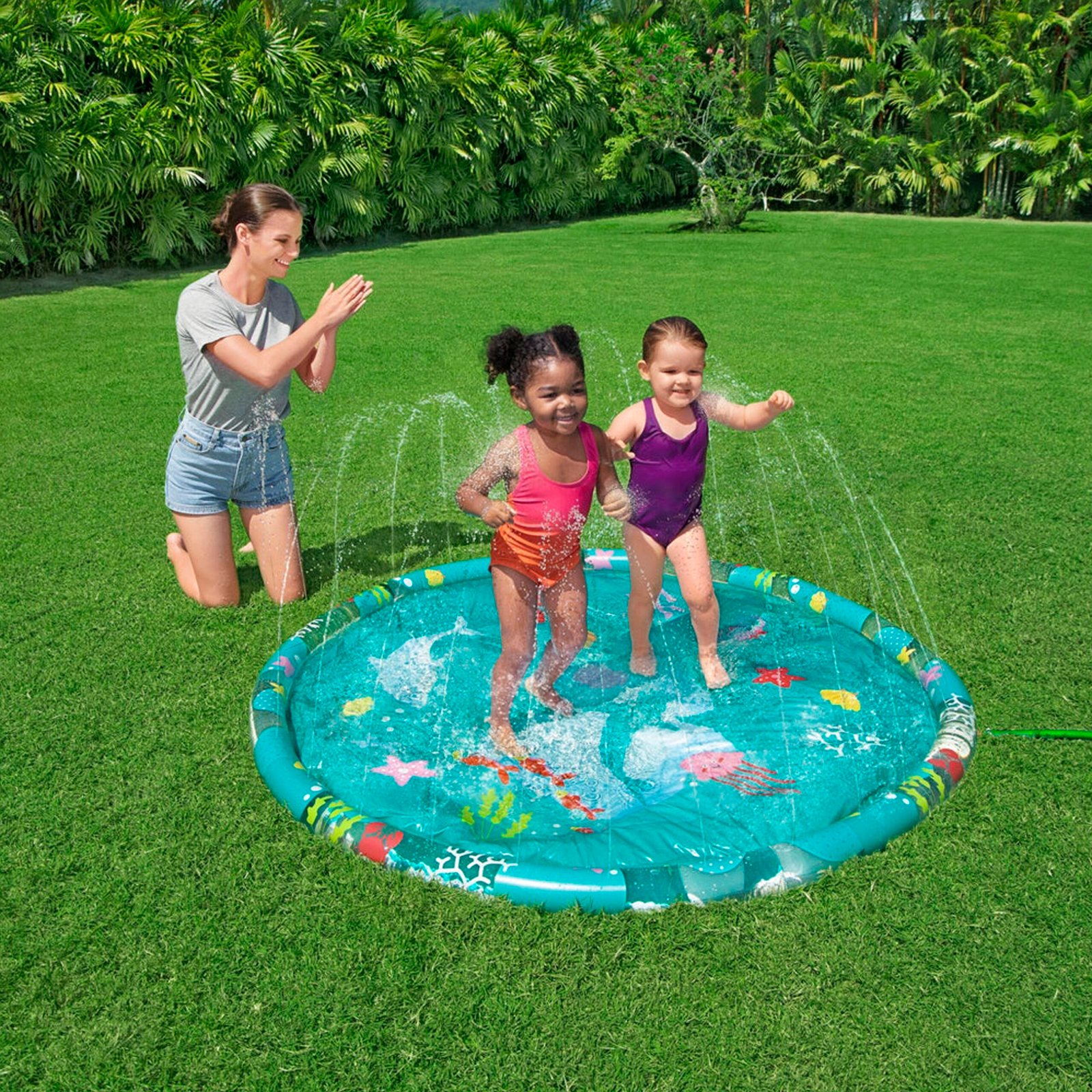El Sprinkler Splash Pad es una piscina infantil ideal para niños y bebés, un gran accesorio de verano para su jardín que brindará a sus pequeños un sinfín de horas de entretenimiento.