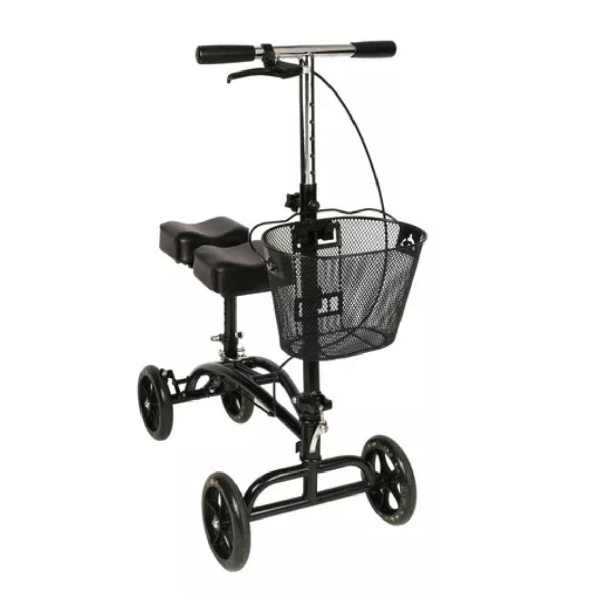 Aumente su movilidad y comodidad mientras se recupera de una lesión con la ayuda de este andador de rodilla plegable Equate. Este andador le permite continuar moviéndose y realizando sus tareas regulares mientras se recupera de una cirugía o lesión debajo de la rodilla. Este scooter de rodilla plegable viene con una canasta y es una alternativa simple y cómoda a las muletas. Diseñado para mantenerte activo y en movimiento, cuenta con ruedas delanteras totalmente maniobrables, para que puedas ir de un lugar a otro con facilidad. También es ajustable para adaptarse a las necesidades de cada usuario individual. Ofrece un sistema de ajuste de piernas y altura sin herramientas, así como una almohadilla para las piernas de dos piezas para brindar mayor comodidad. Además, el sistema de frenado doble de lujo brinda la máxima seguridad. Este andador de rodilla para exteriores también es adecuado para uso en interiores. Llegue a donde necesita ir con el andador de rodilla plegable Equate.