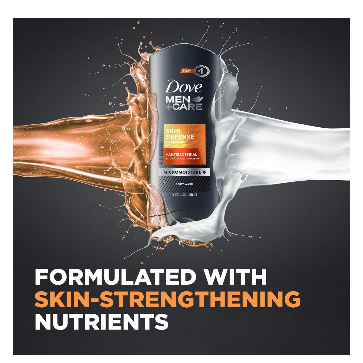 Para comenzar el día con una nota limpia, agrega Dove Men+Care Skin Defense Body and Face Wash a tu rutina de ducha y cuidado de la piel. Esta fórmula de limpieza antibacteriana altamente efectiva es resistente a la suciedad y los gérmenes, pero fácil y cómoda para la piel. El gel de baño suave e hidratante de Dove formulado exclusivamente para hombres ayuda a mantener la piel saludable y fuerte, y está clínicamente probado que elimina el 99 % de las bacterias. Con la tecnología Micro Moisture, que se activa al hacer espuma, Dove Men+Care Skin Defense Body Wash ayuda a retener la humedad natural de la piel y la deja fresca e hidratada. Este gel de baño de marca recomendado por dermatólogos se puede usar tanto para el cuerpo como para el rostro. Este gel de baño para hombres brinda comodidad total a la piel y se enjuaga limpiamente sin dejar ningún residuo para que obtengas una limpieza refrescante. La fórmula te deja con un cuerpo limpio y un aroma fresco y refrescante. Ahora puede comenzar su día con una piel que se siente saludable, protegida, limpia y fresca con este poderoso y efectivo gel de baño para hombres. Para una cara y cuerpo limpios, exprime Dove Men+Care Body and Face Wash en la palma de tu mano. Colóquelo en una espuma ligera entre sus manos y masajee en la cara y el cuerpo antes de enjuagar bien. Dove Men+Care celebra una nueva definición de fuerza: una con el cuidado en el centro. Creemos que el cuidado hace al hombre más fuerte. La fuerza real se muestra a través del cuidado que brindas a las personas que te importan, y eso te incluye a ti. Es por eso que diseñamos especialmente los productos Dove Men+Care para proteger y cuidar tu piel.