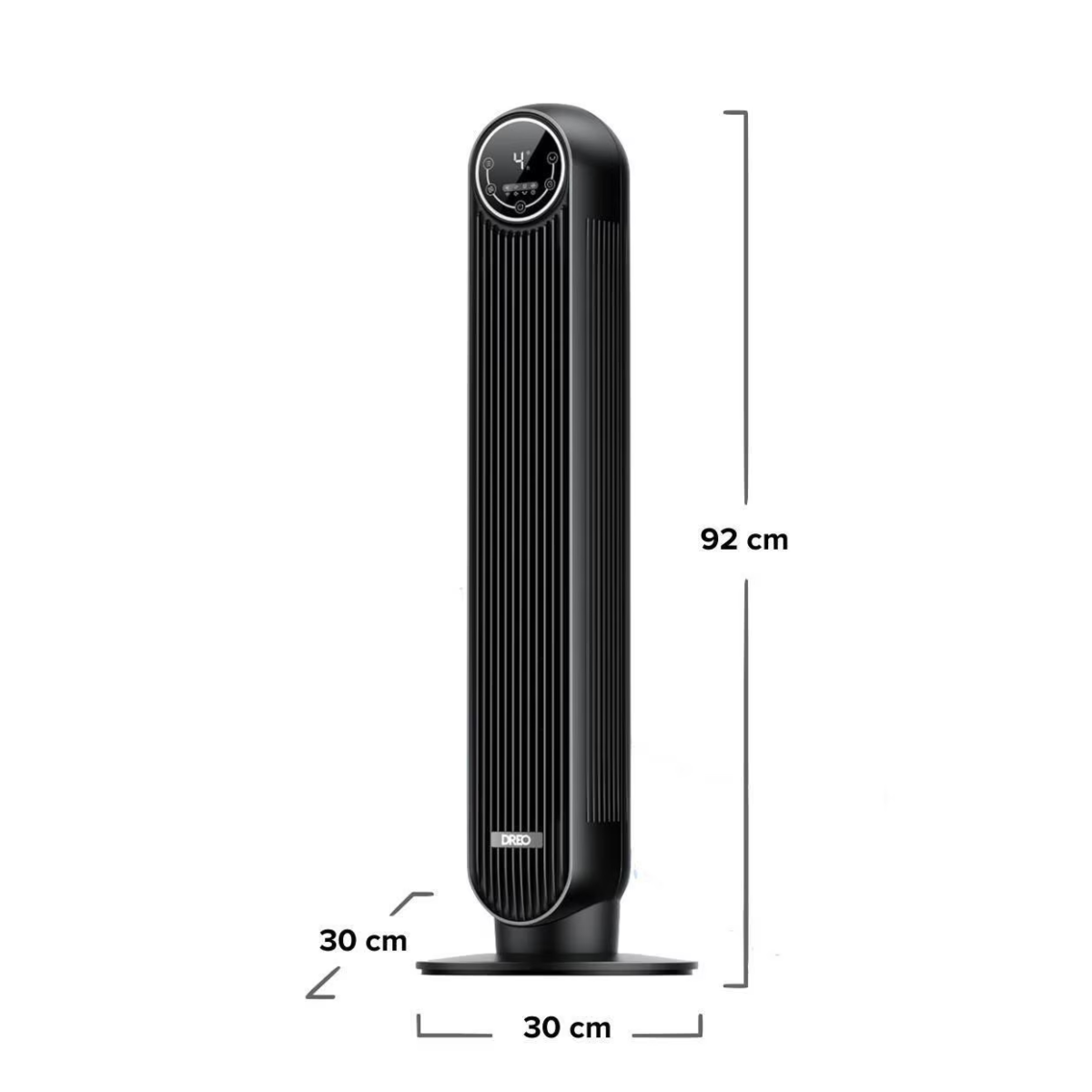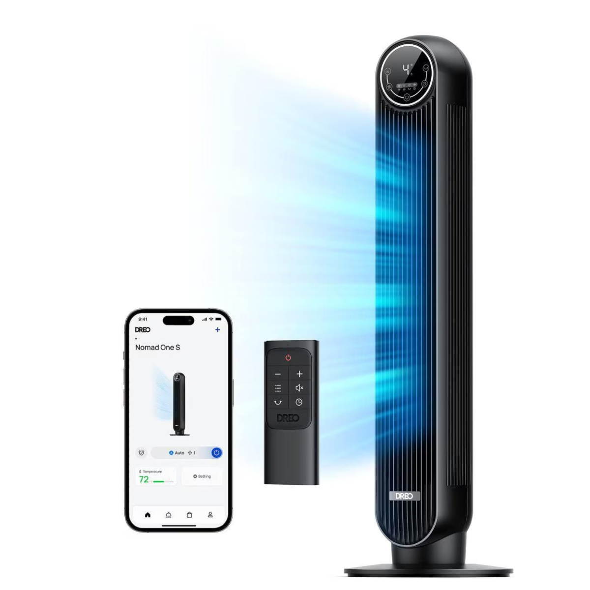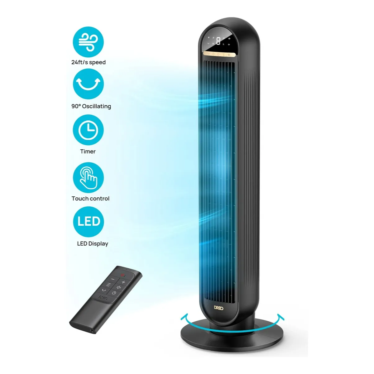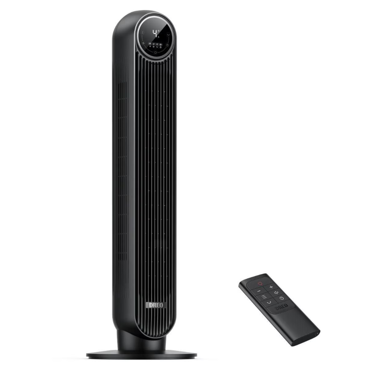 Ventilador eléctrico de torre Dreo con un diseño compacto, fácil de transportar a su dormitorio, sala de estar o cualquier otro lugar. Este ventilador de pie ofrece una velocidad de 7,3 m/s, distribuyendo eficazmente el flujo de aire por toda la habitación. Con 4 velocidades y 4 modos, su oscilación de 90° mejora la circulación del aire. Este ventilador sin aspas adopta un diseño único de conducto de aire con mecánica de fluidos y minimiza el ruido. Certificado por ETL, este ventilador para dormitorio funciona de forma segura sin supervisión. Este silencioso ventilador oscilante sin aspas es potente para interiores, dormitorios, oficinas y habitaciones.