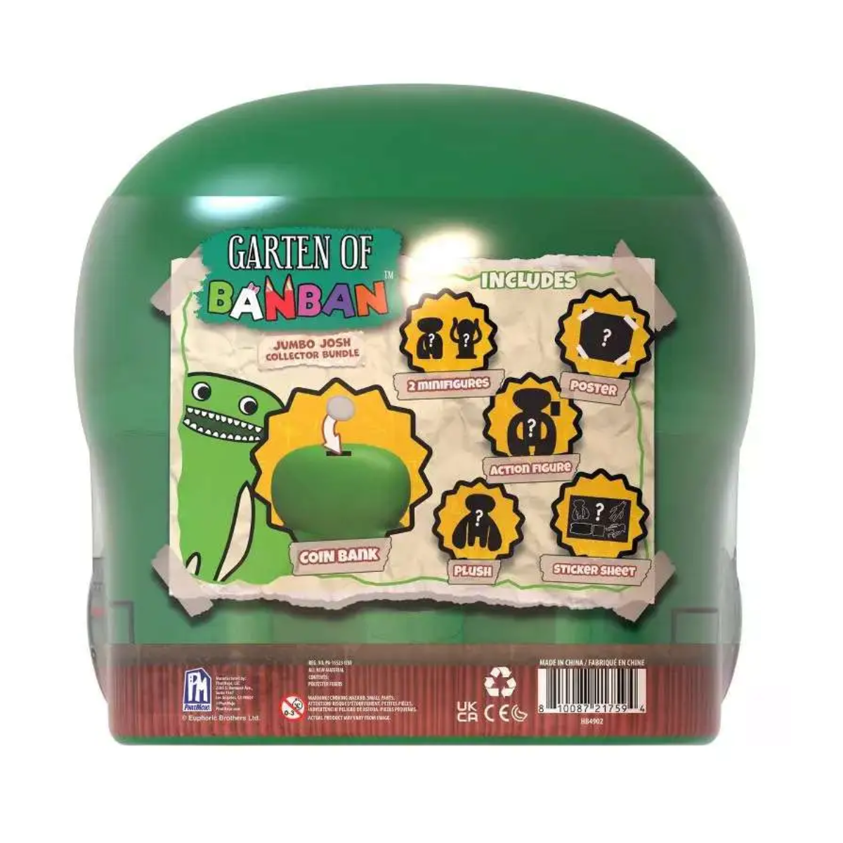 El jardín de infancia abandonado de Banban con el paquete de colección “Jardín de Banban: Jumbo Josh”. Este contenedor reutilizable de 24 cm presenta a Jumbo Josh, el personaje favorito de los fans, y se abre para revelar 7 artículos geniales. Esta increíble colección instantánea incluye una figura de acción exclusiva con un accesorio, 2 minifiguras exclusivas, una hoja de pegatinas, un póster y un peluche exclusivo. El paquete de colección “Jumbo Josh” también funciona como alcancía. ¡Cuidado, una vez que entres al Jardín de Banban, puede que nunca salgas!