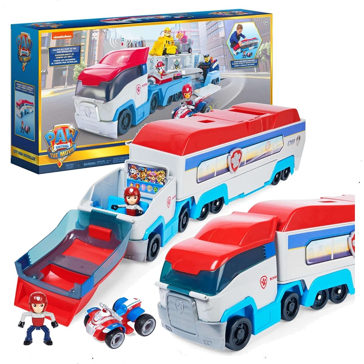 ¡Únete a Ryder y PAW Patrol en emocionantes misiones inspiradas en PAW Patrol: The Movie con City PAW Patroller! Este vehículo de rescate del equipo viene con Ryder y su ATV y cuenta con un centro de comando móvil, un elevador de vehículos y efectos de sonido realistas. Hay espacio para exhibir hasta 5 vehículos de rescate de PAW Patrol (se venden por separado) cuando está abierto o 3 vehículos cuando está cerrado. ¡Usa el elevador para subir los vehículos al centro de comando y ayuda a Ryder a dar a los cachorros (se venden por separado) sus misiones! ¡Presiona el botón en el interior para obtener efectos de sonido! Luego, cierre el City PAW Patroller y haga rodar a Ryder y su vehículo todo terreno por la rampa trasera. ¡Corre al rescate con ruedas de trabajo! Para obtener más efectos de sonido, presione el botón de la insignia en el exterior. ¡Salva Adventure City y juega tus propias aventuras de rescate de PAW Patrol con City PAW Patroller!