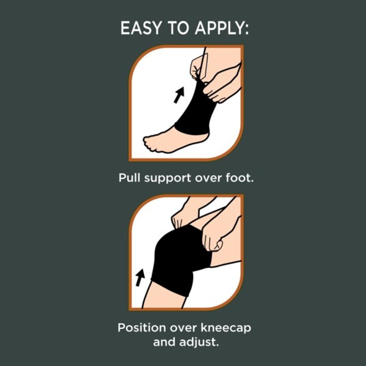 Fácil de colocar: Tire del soporte sobre el pie y luego colóquelo sobre la rótula y ajústelo